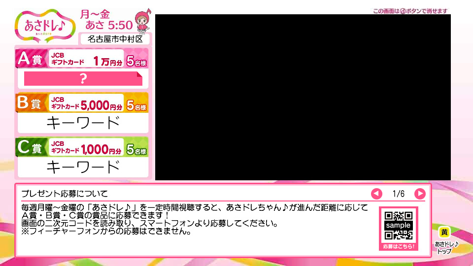 リモコンの「青ボタン」でキーワードを確認して、スマートフォンから応募してね。