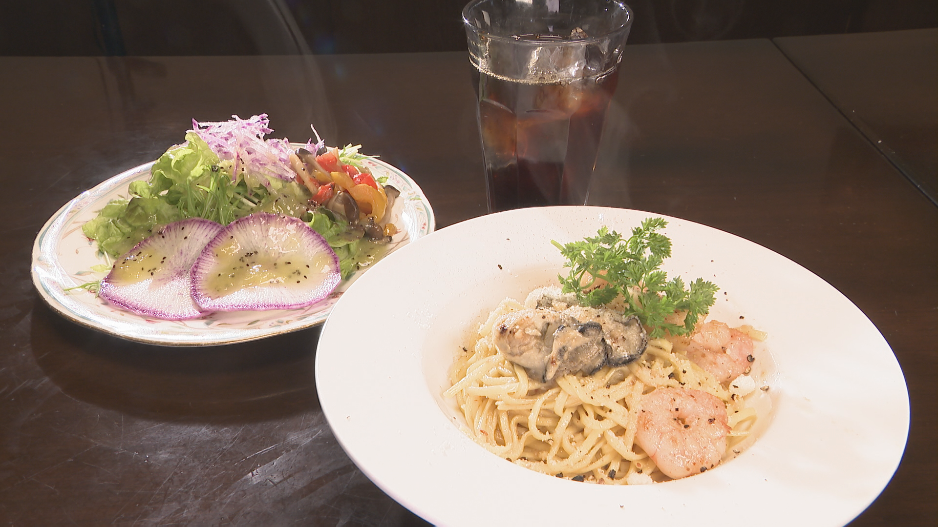 ・<ランチ>魚介たっぷりオイルパスタ(サラダ・ドリンク付き) 1630円