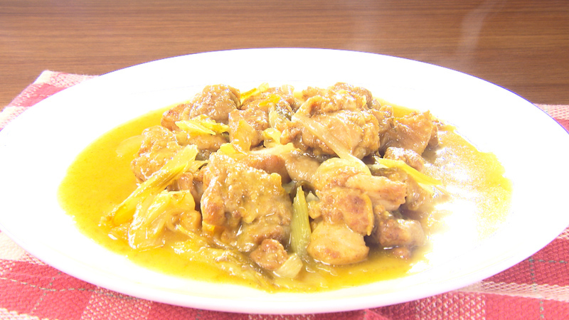 ①一口大にカットした鶏もも肉に塩・コショウで下味をつけ、カレー粉を加えて揉みこむ