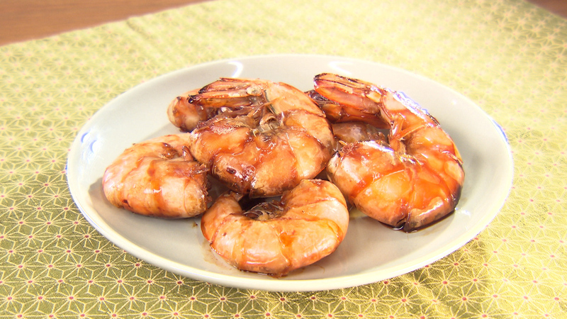 エビ(殻付き) 9尾、酒 200cc、砂糖・しょうゆ・みりん 各大さじ1