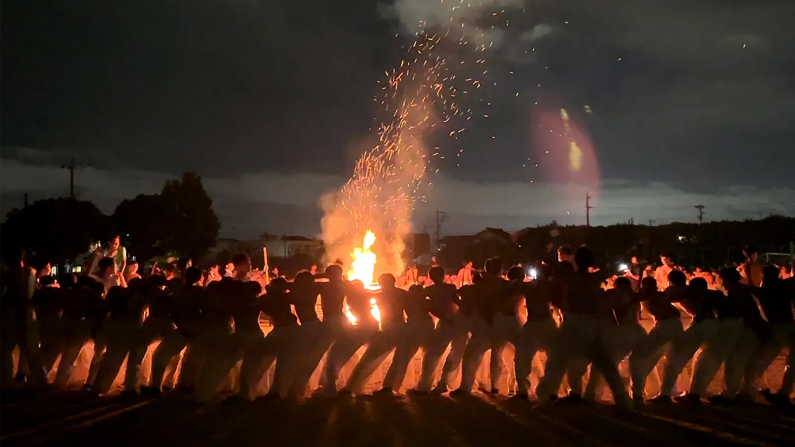 巨大な炎を囲み上裸の男子達が踊る伝統行事だ。