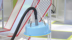 ポイントは掃除機の吸い込み口の大きさです。ここを大きくしてピッタリ板に付ければ、人間ぐらい軽々と持ち上げてしまうんです。