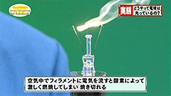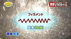 熱によって液体窒素が瞬間的に蒸発し気体になり、フィラメントの周りを窒素が覆っているので、フィラメントは濡れることなく、光り続けたのです。