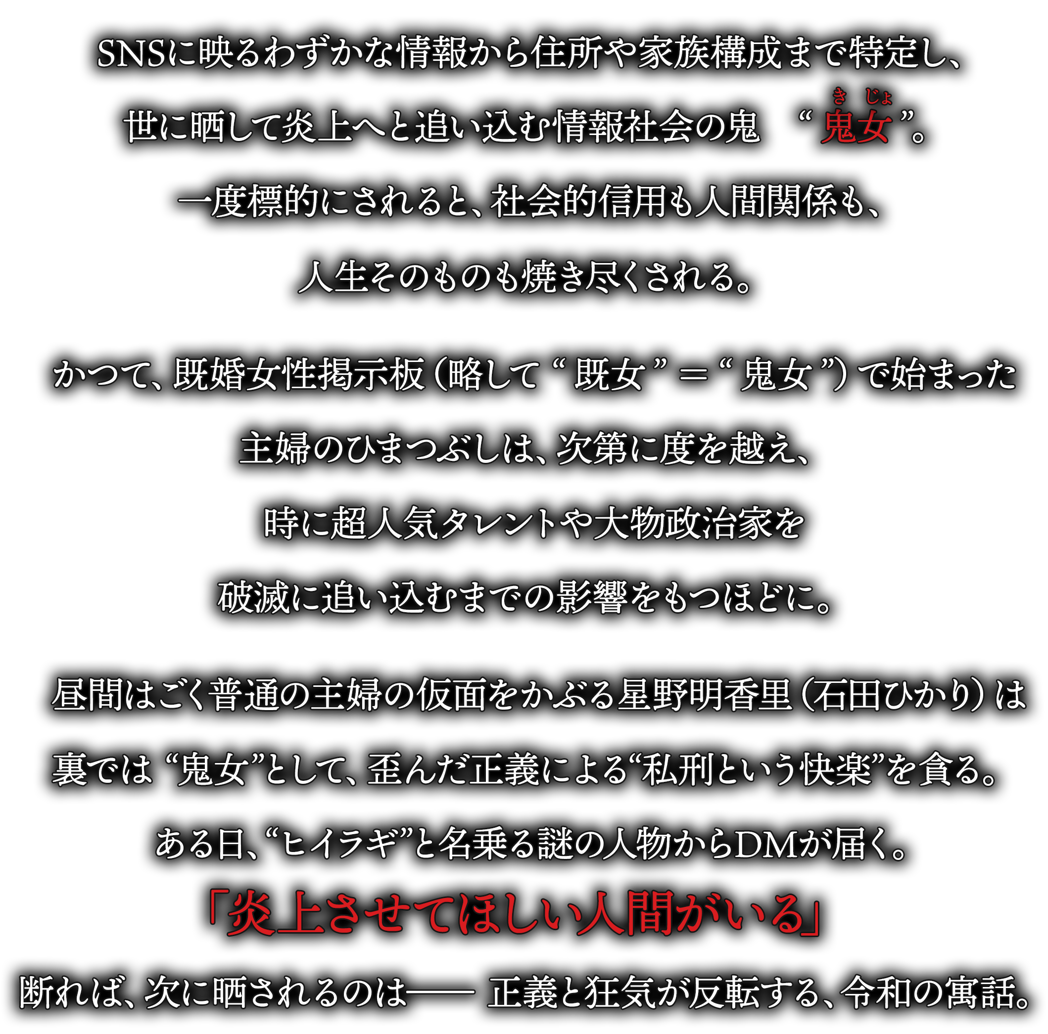 表では“完璧な主婦”、裏ではSNSで特定と炎上を操る“鬼女”の顔を持つ。