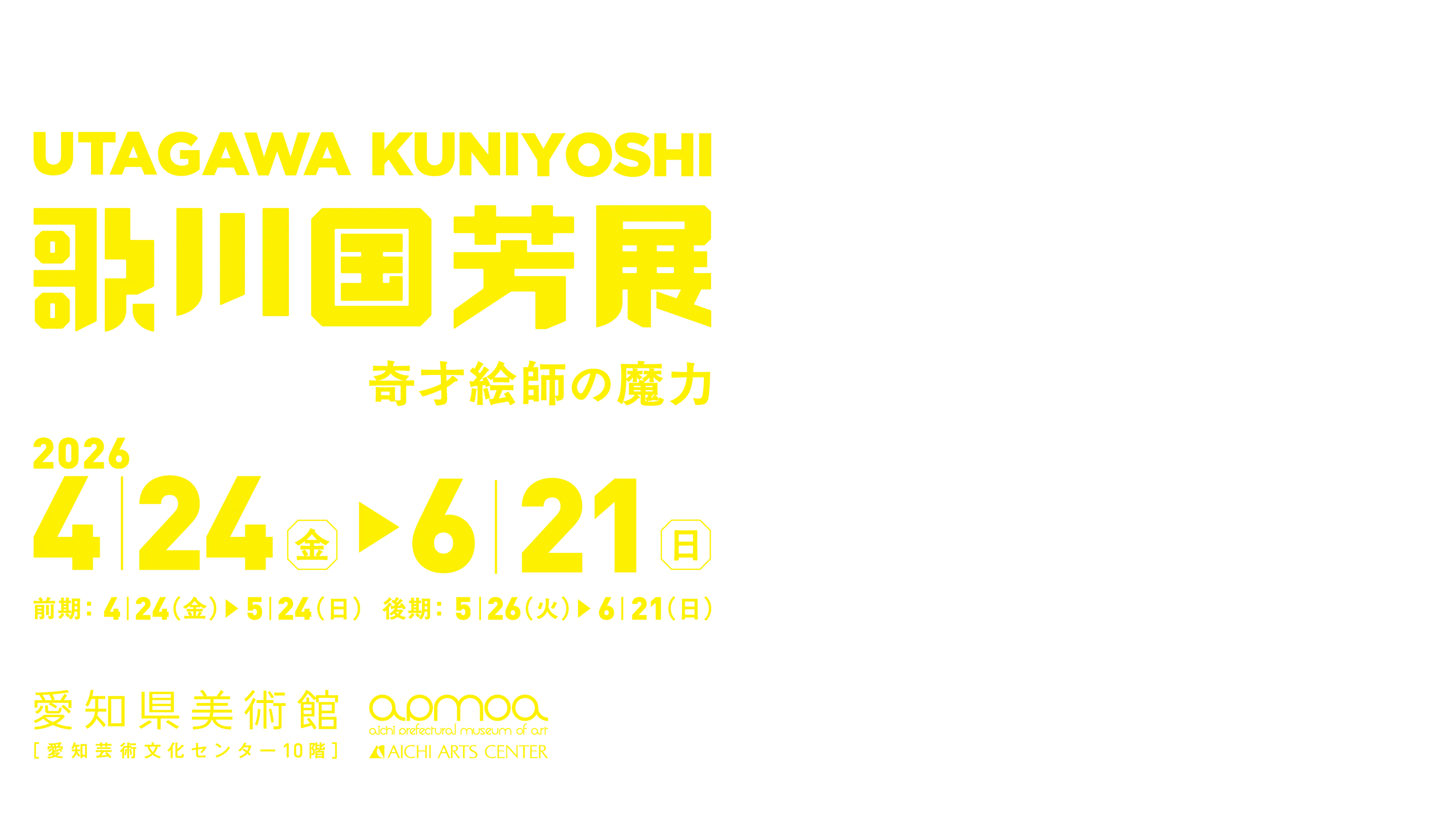 本展では、幅広い画題を手掛けた国芳の武者絵、戯画、美人画、風景画、役者絵に肉筆画も加えた約400件の作品を展示し、国芳の全貌に迫ります。