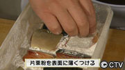 1)のサバの汁気を拭き取り、片栗粉を表面に薄くつける。