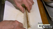 4つ割りになっている3)を4つに束ねて、5)を巻く。