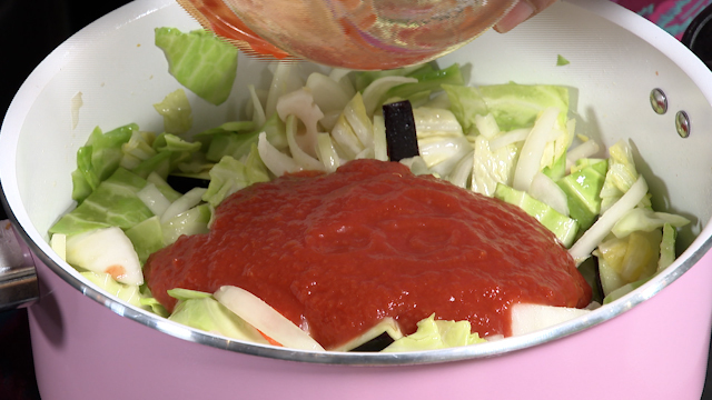 ④カットトマトを入れ、煮込む