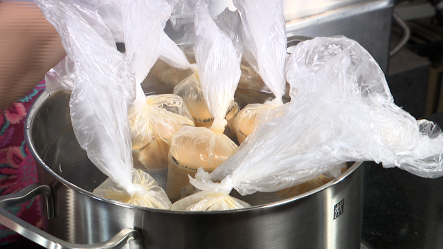 ⑦沸騰したお湯の火を止めて、袋を入れる。10分前後で適度に固まれば完成