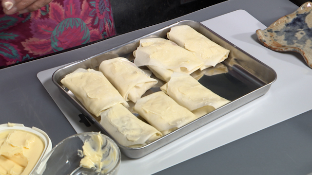 ③皮をつつんで外側にもマーガリンを塗る