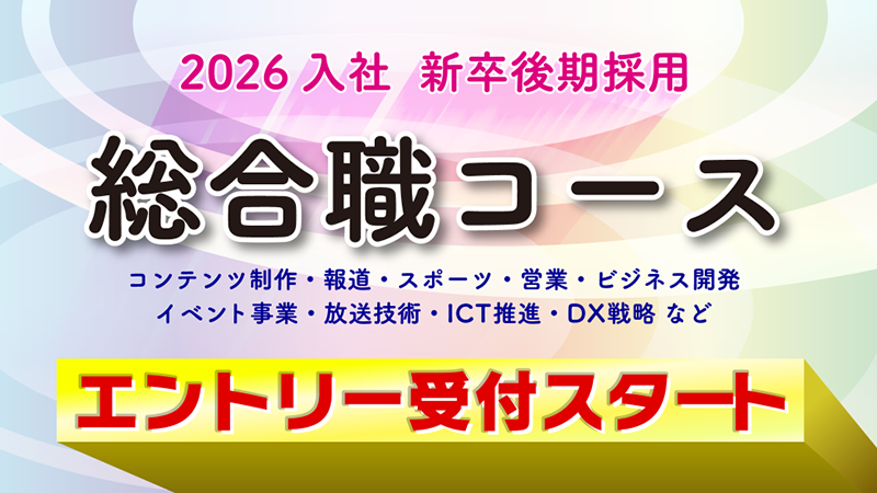 募集職種は「コンテンツ制作」「報道」「コンテンツビジネス」「イベント企画」「放送技術」「経理」の6職種。