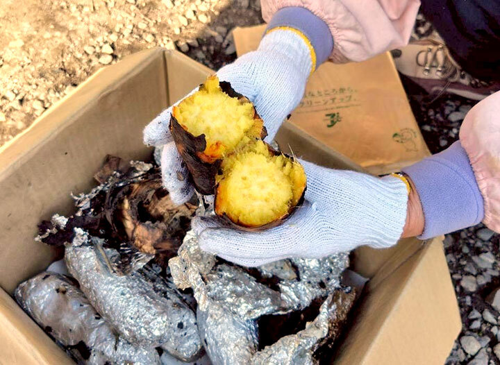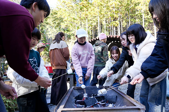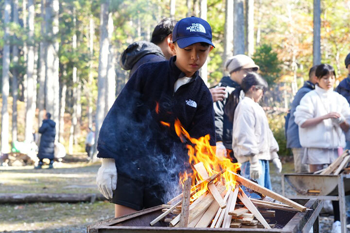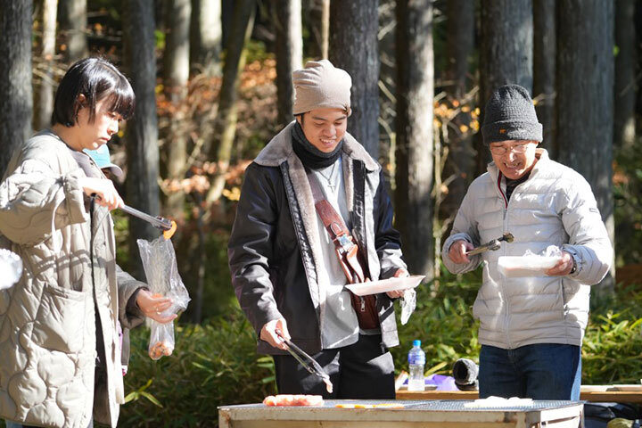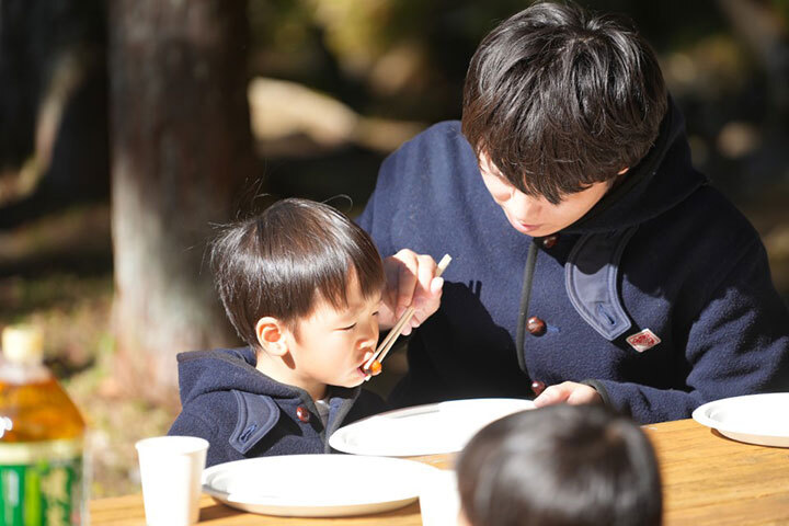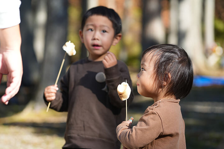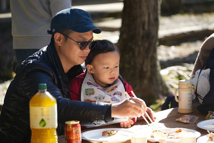 ワークショップを楽しんだ後は、【森で味わう】ごちそう!子供たちと一緒に火起こししたあとは、BBQ、焼きマシュマロ、ほくほく焼き芋、焼きそばも!森の美味しい空気の中での食事を楽しんでくれていました。