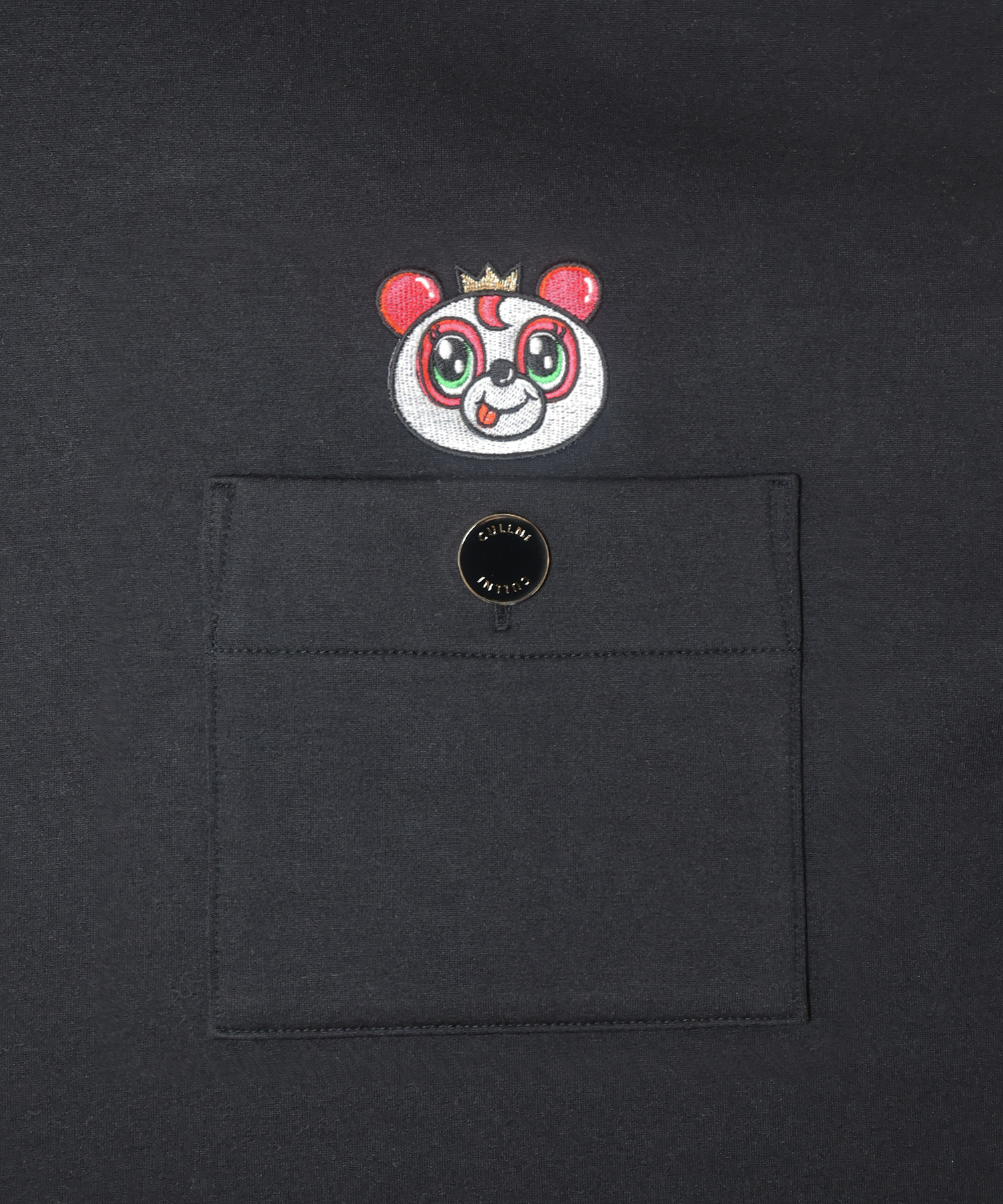 左胸には青山氏が手掛けたキャラクター刺繍を施し、刺繍の下にはCULLNIオリジナルのゴールドボタン付きポケットを配しています。