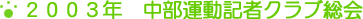 2003年も、さまざまなスポーツを取材・報道してきた中部のテレビ、ラジオ、新聞各社の運動記者クラブ員が一堂に会し、一年を締めくくる総会が先日行われ、わたくし前田も出席して参りました。