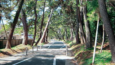 御油宿から赤坂宿までの600mにわたって約300本の松が並び、当時の面影を残しています。