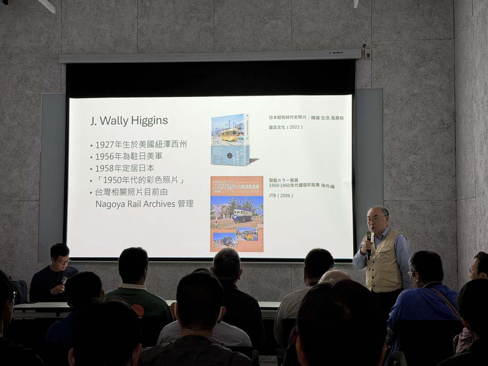 冒頭、NPO法人名古屋レール・アーカイブス理事長の服部重敬さんからまずはヒギンズさんとはどんな経歴の方であるかを紹介。それから写真の上映がスタートしました。