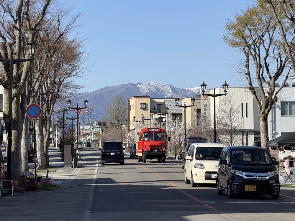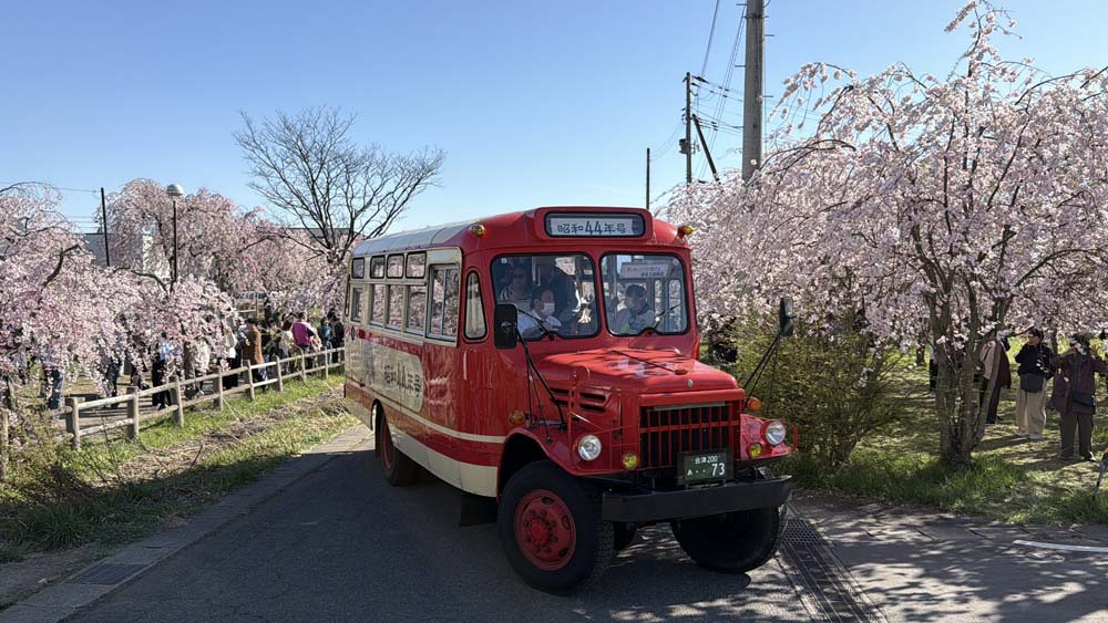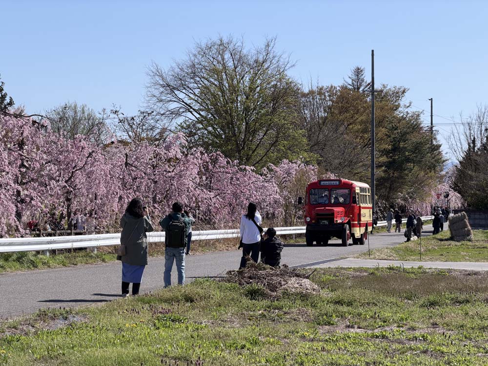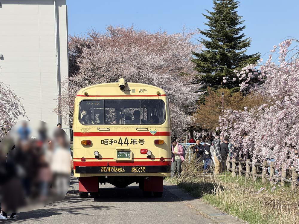 もっともここに来た主たる目的は、桜並木に平行する道路で走る期間限定のボンネットバス。