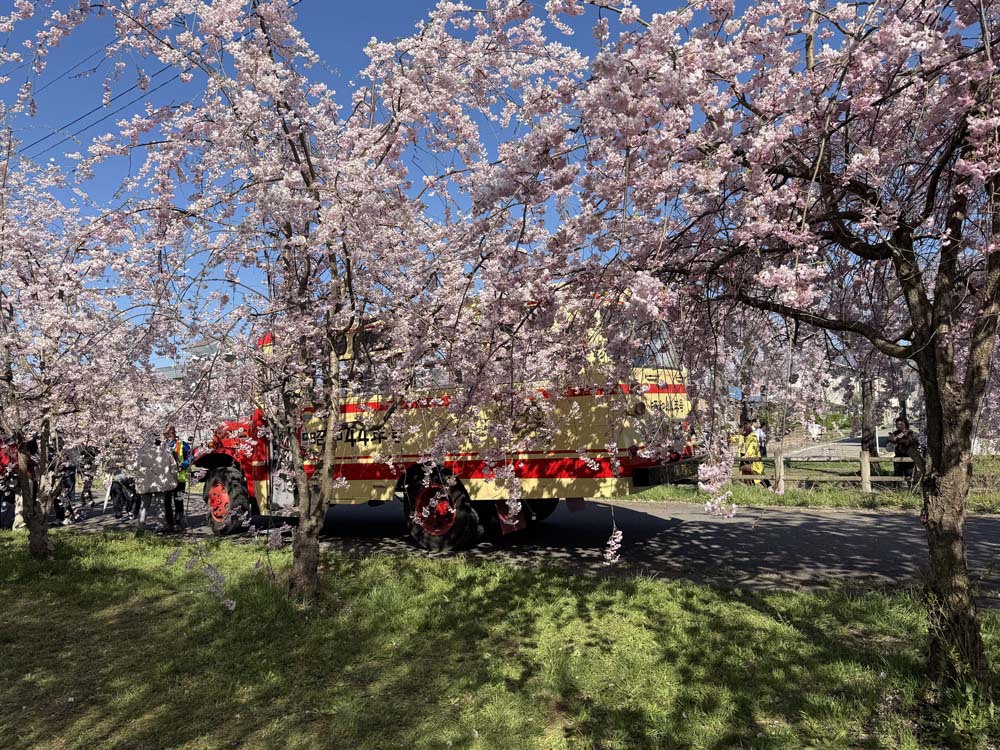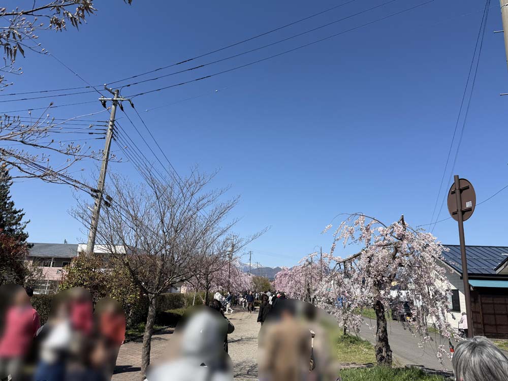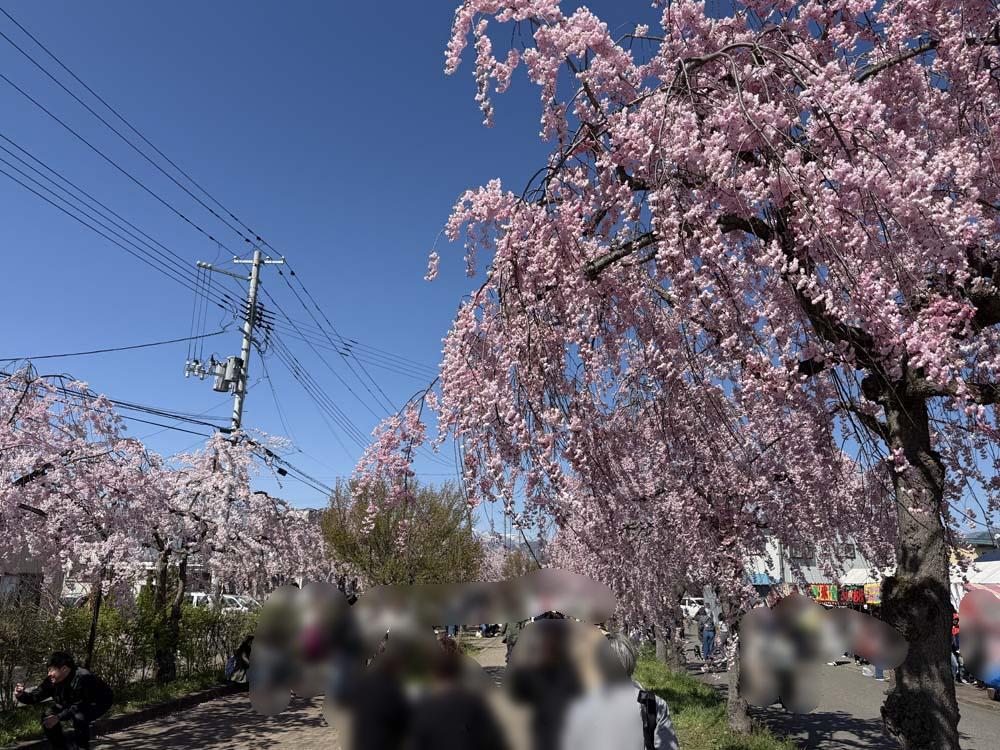 その喜多方~会津村松間の日中線跡は、昭和60年代に入り自転車歩行者道として整備されるとともに、約3kmに渡り約1,000本のしだれ桜が植栽され、春は「桜のトンネル」として、地元市民だけではなく、東北でも屈指の人気の名所スポットとなっています。