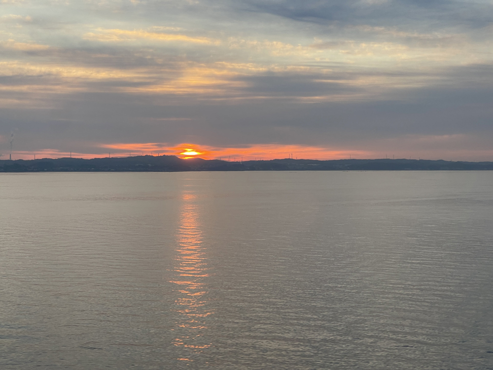 名鉄空港線電車から見た夜明け。2025年12月11日。