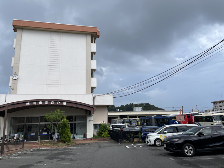 横浜市営バス滝頭営業所に隣接というか、もともとは横浜市電の滝頭車庫・滝頭車両工場跡にこの保存館があります。
