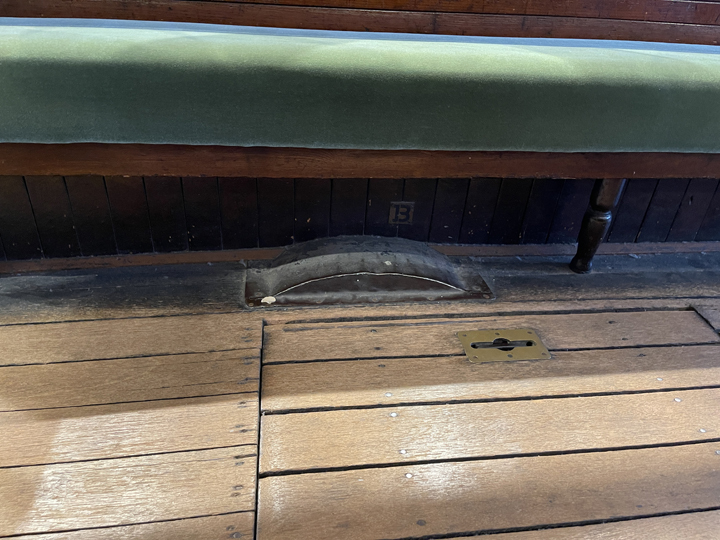 ところでこの写真を撮っていて気になったのが左の座席下の小さなアーチ。