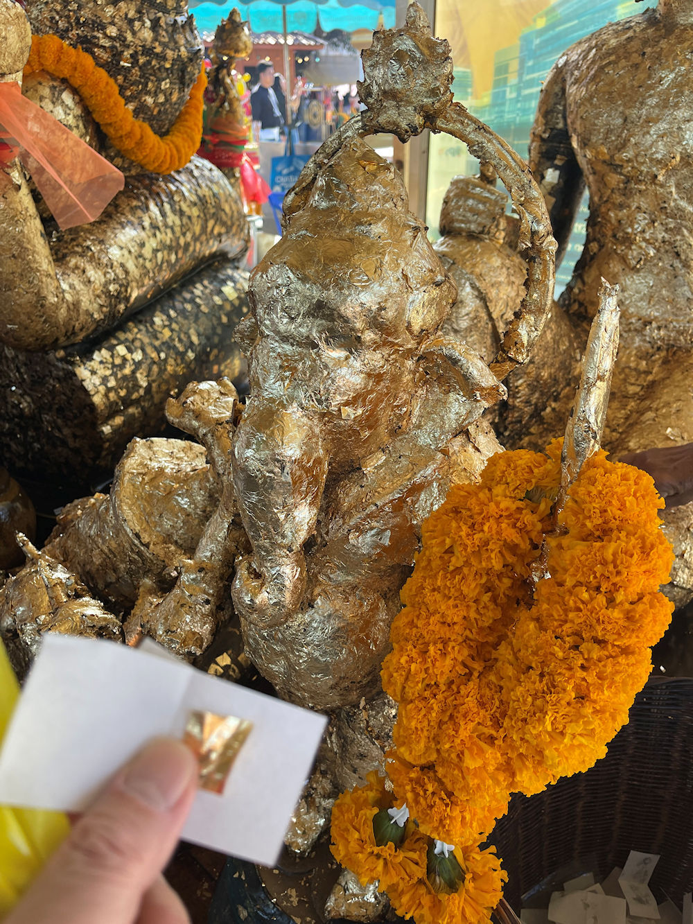 ガネーシャに金箔を貼っていきます。