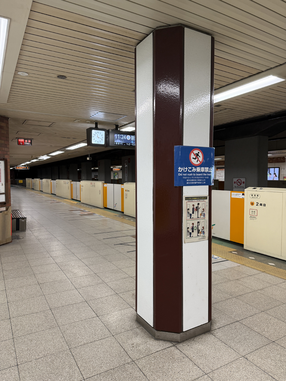 同様の柱はコンコースにもあり、エスカレーター横は白一色。