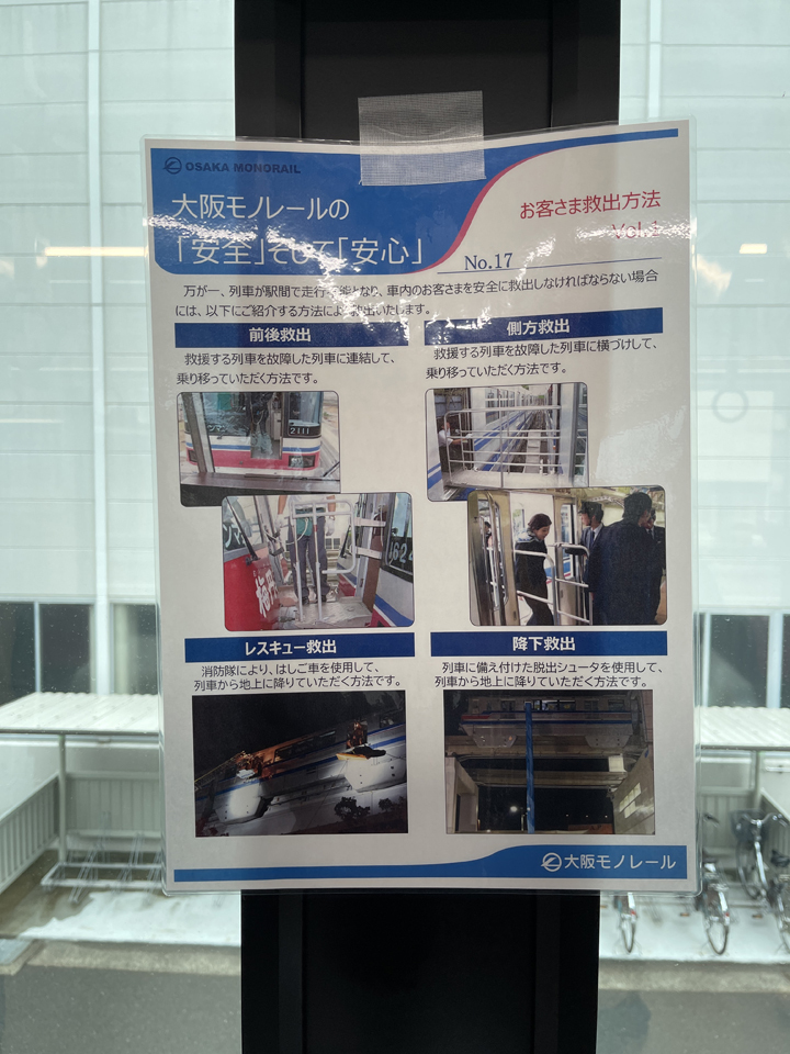 このような脱出装置は他社でも導入されており、モノレールの安全・安心が進歩していることを改めて知った良い機会となりました。