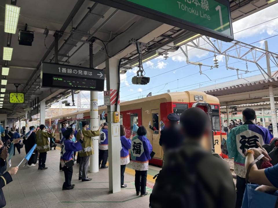 参考までに9号車(福島駅行き)では「9号車」の缶バッジが配付されたそうです。