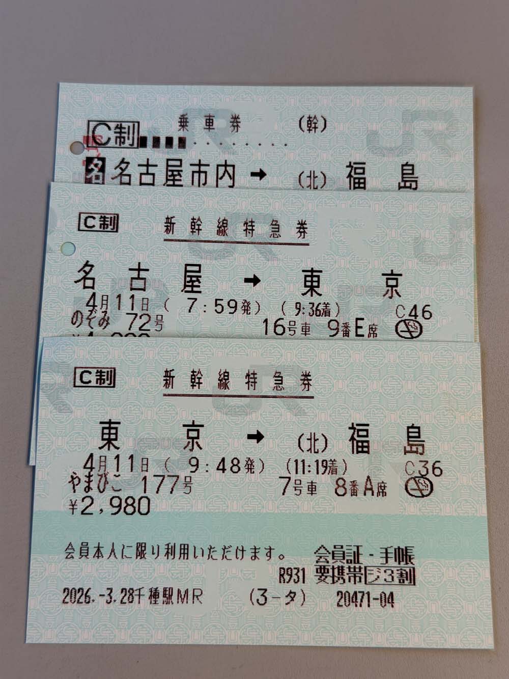 ジパング倶楽部の乗車券ですが、時間の都合で東京駅までは「のぞみ72号」。