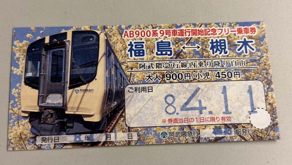 その後、色々分かってきて、最終的にこの「AB900系9号車運行開始記念フリー乗車券」の意味合いを知ったのは途中の梁川(やながわ)駅に着いて、暫くしてからでした。