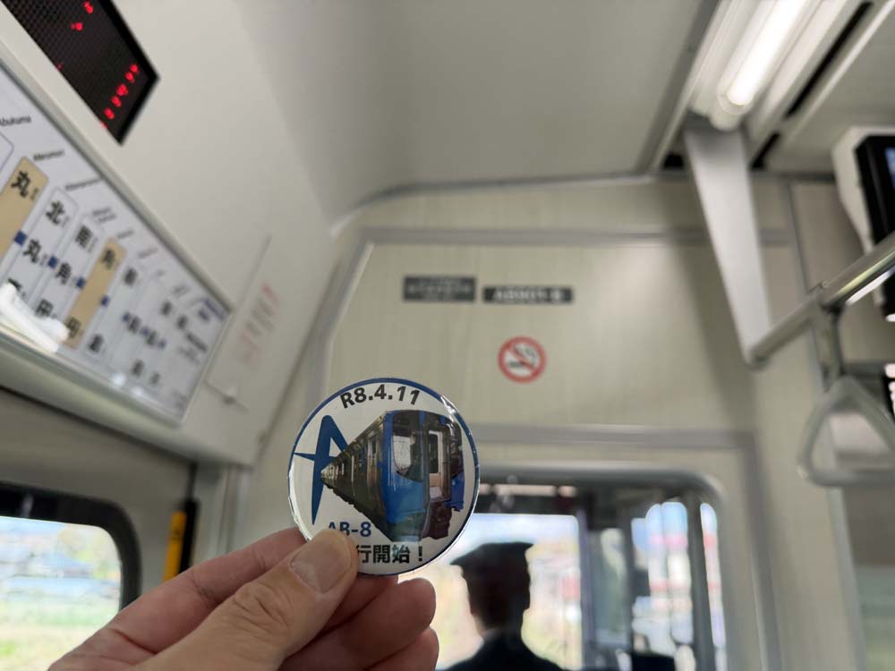 因みにこの車内では記念の缶バッジが乗客全員に配布されました。