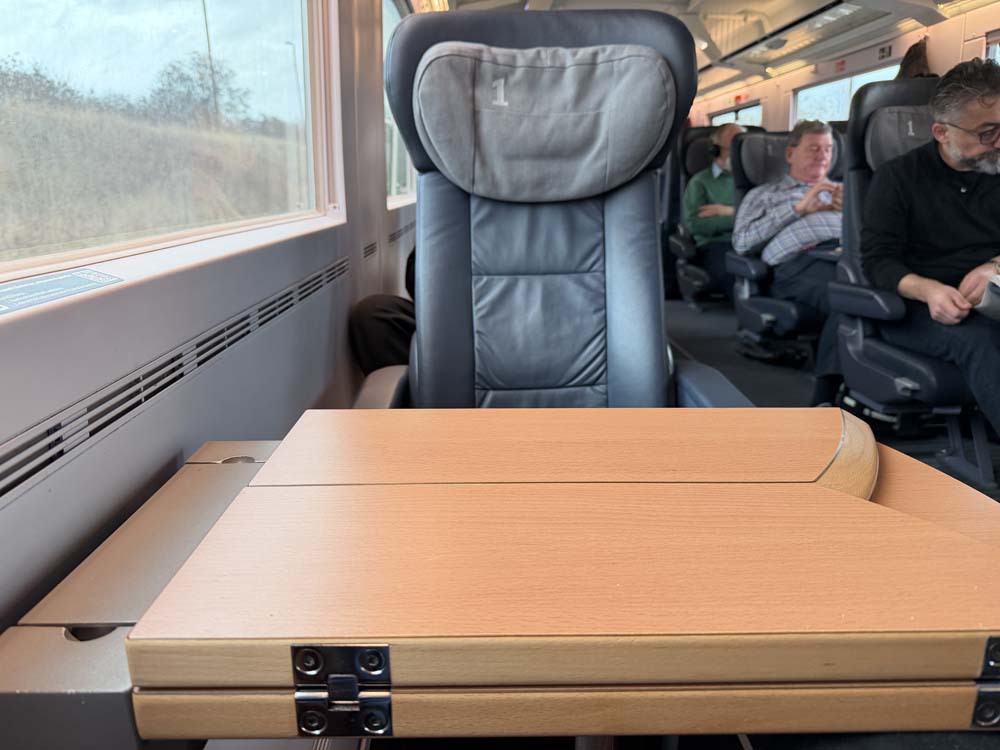 今回、往復とも一等車を予約したのですが、往路はテーブルを挟んでの四人掛け通路側。復路はやはりテーブルを挟んでの一人掛け。