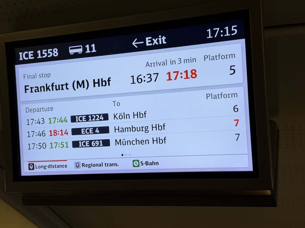 定刻でフランクフルト中央駅行きが入線です。