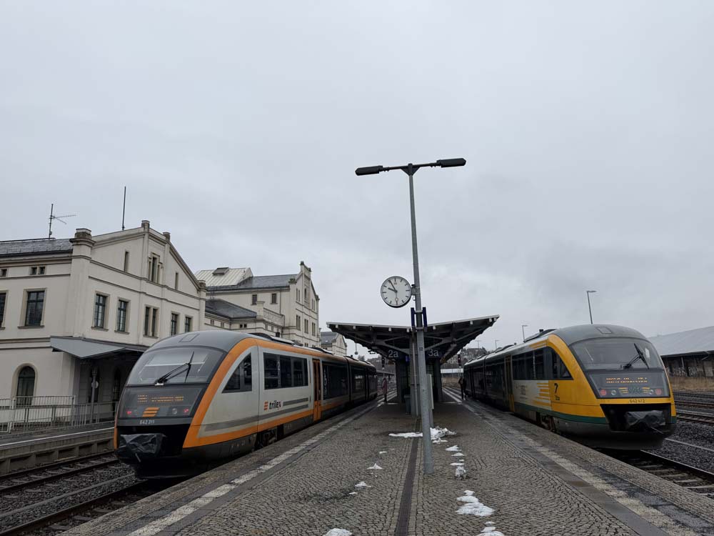 この日はドレスデンからツイッタウに向かう蒸気機関車重連の撮影に行ったのですが、途中区間で突然工事運休、代行バスとなり、当初、ツイッタウ駅で折り返す蒸気機関車重連列車の折り返し時間を使い、ツィッタウ狭軌鉄道/ベルツドルフ駅まで撮影に行く予定だったのが全て泡となりました。