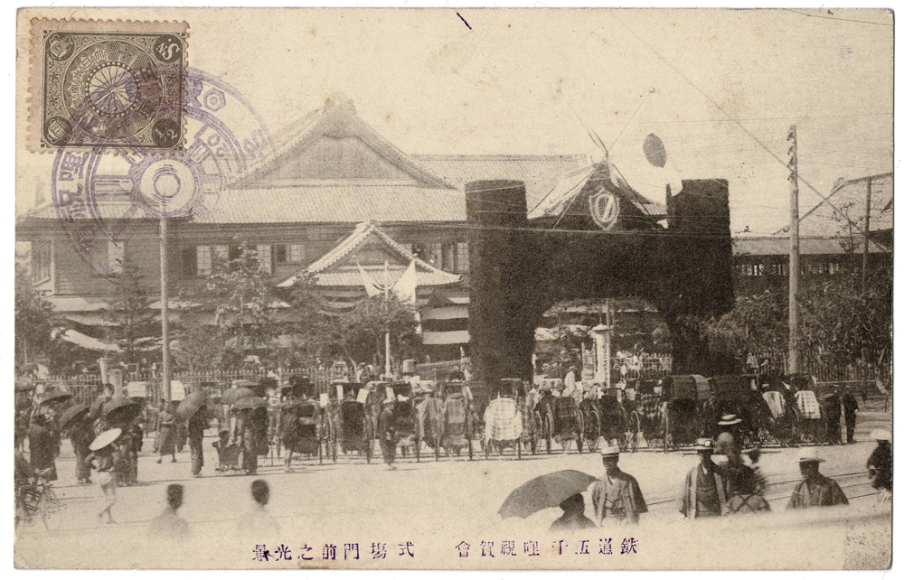 「鉄道五千哩祝賀会 式場、門前之光景」