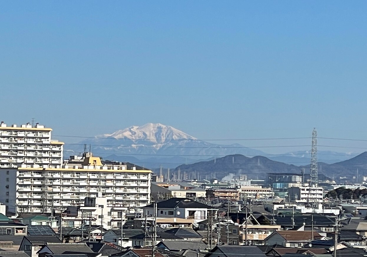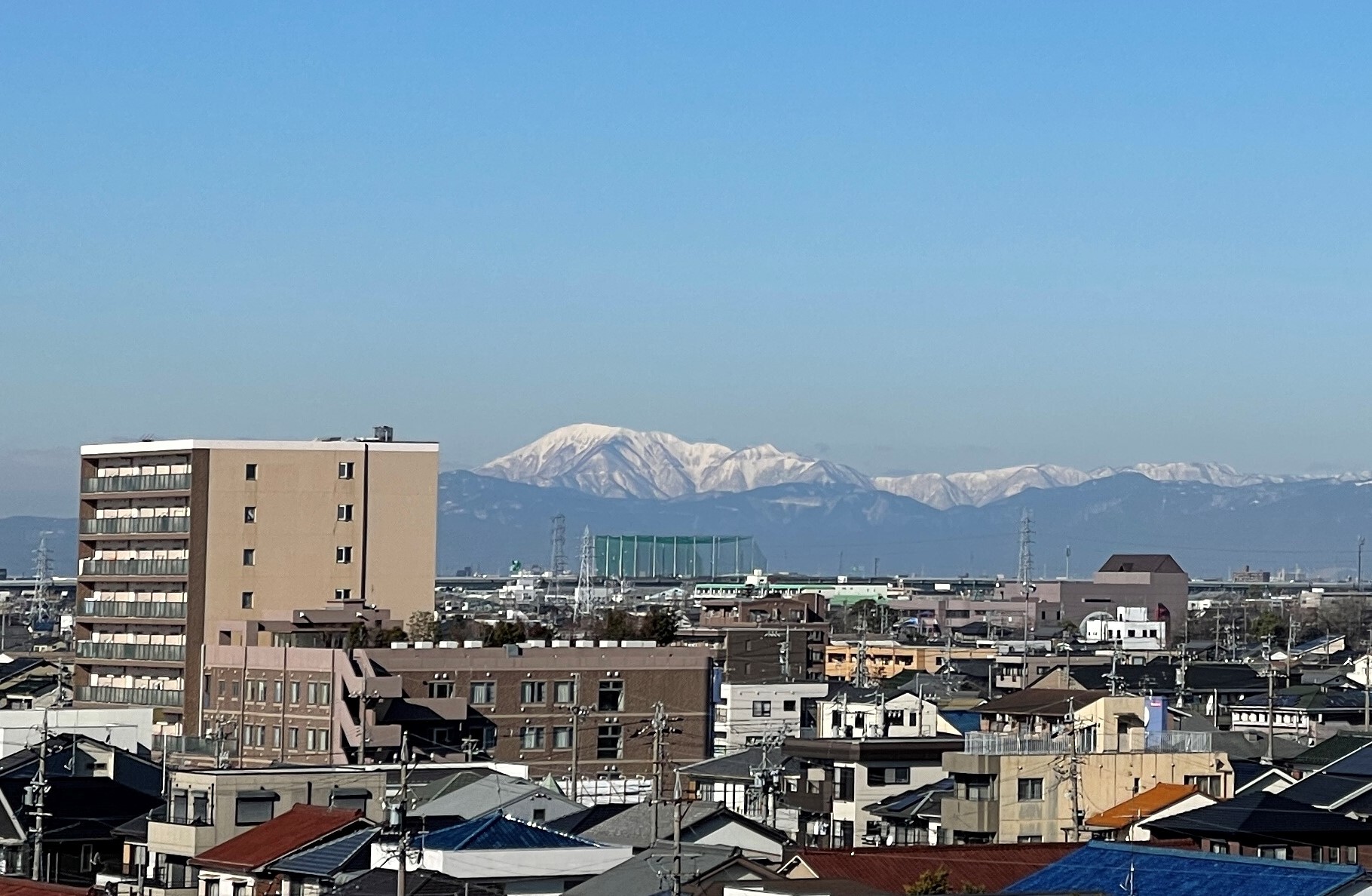 名鉄西春駅直ぐの名鉄コミュニティサロン西春に教室があり、その駐車場からの風景。こちらは伊吹山。