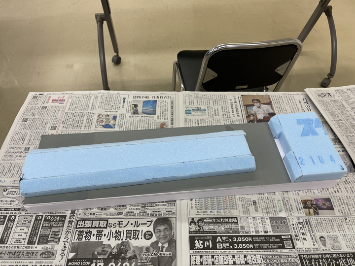 この日はここから始めてスタイロフォームに色を塗っただけで終了。その代わりに最終形のイメージをつかむべく講師の作品を徹底チェック。