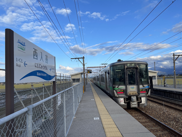 西入善駅着15:23。