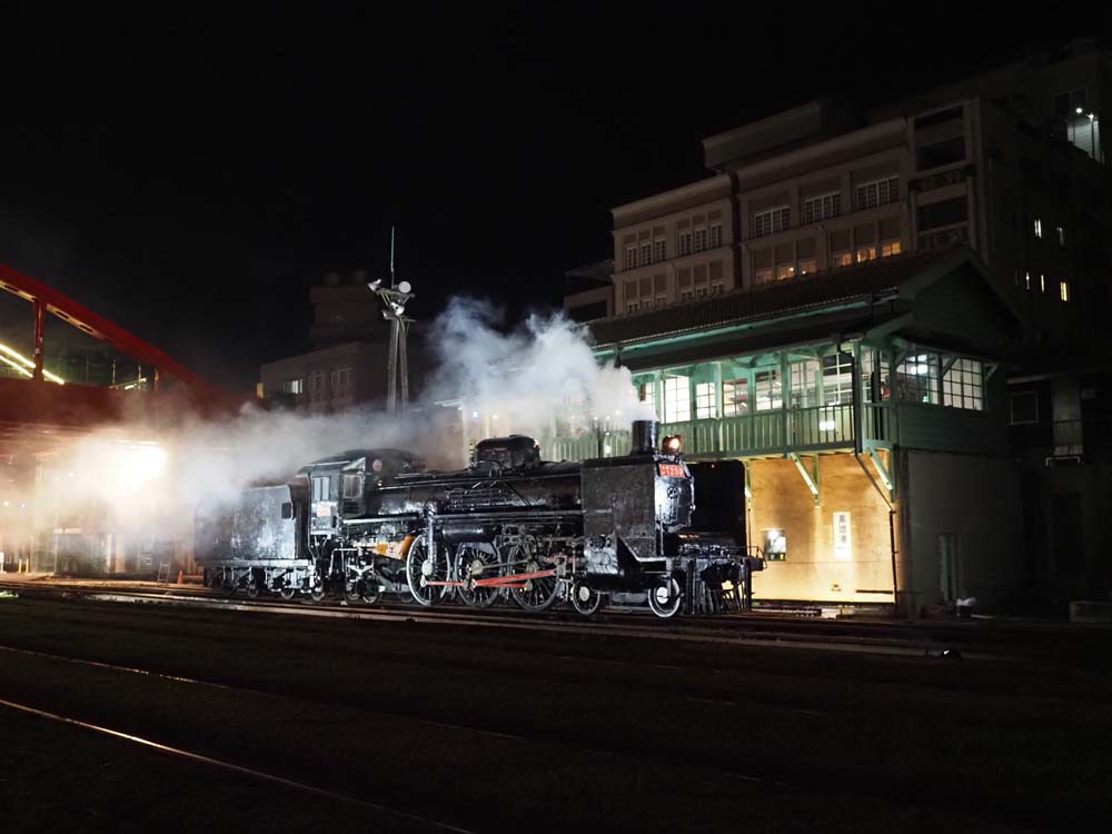 蒸気機関車の停止位置は何度も微調整をお願いしています。