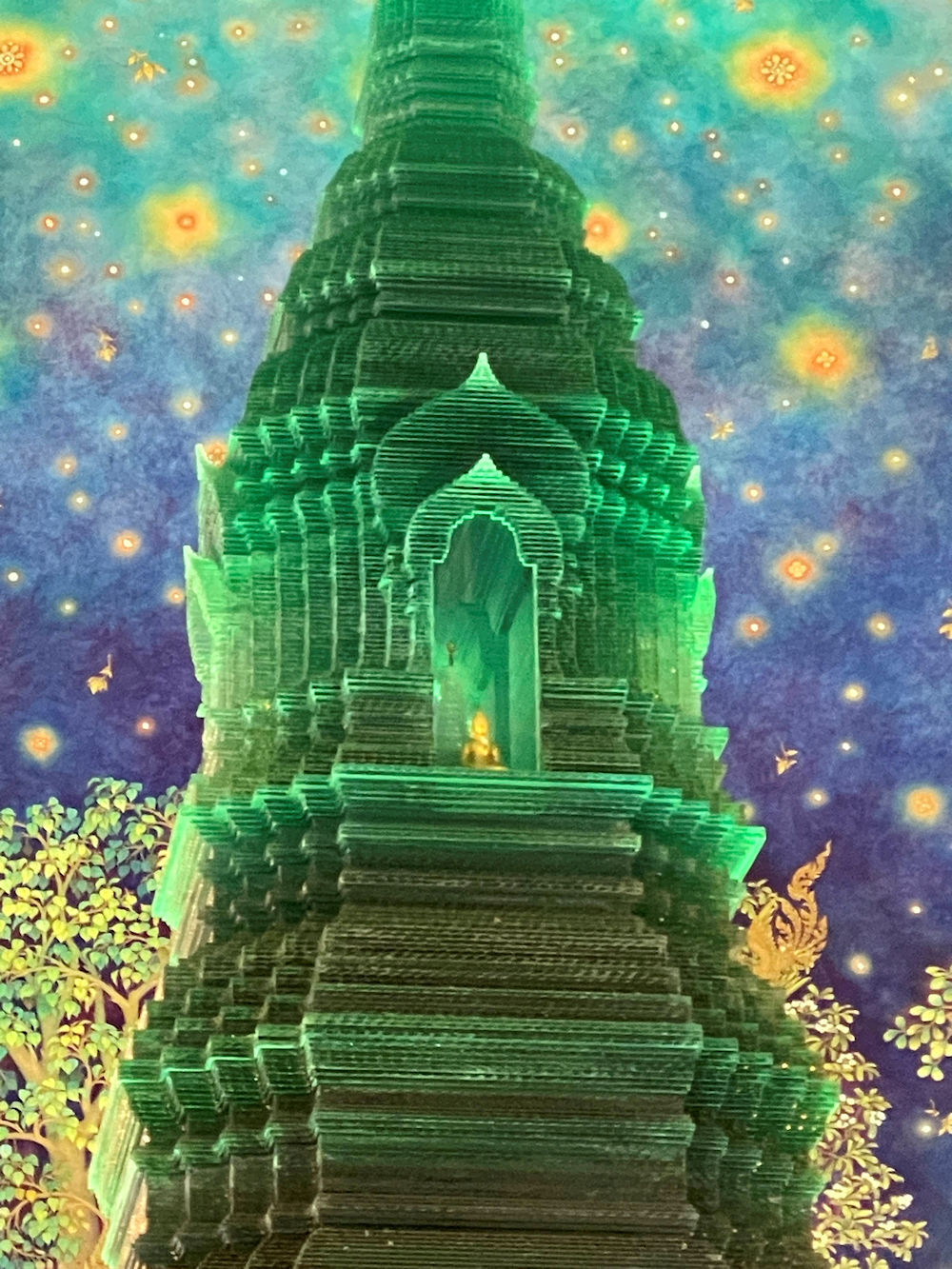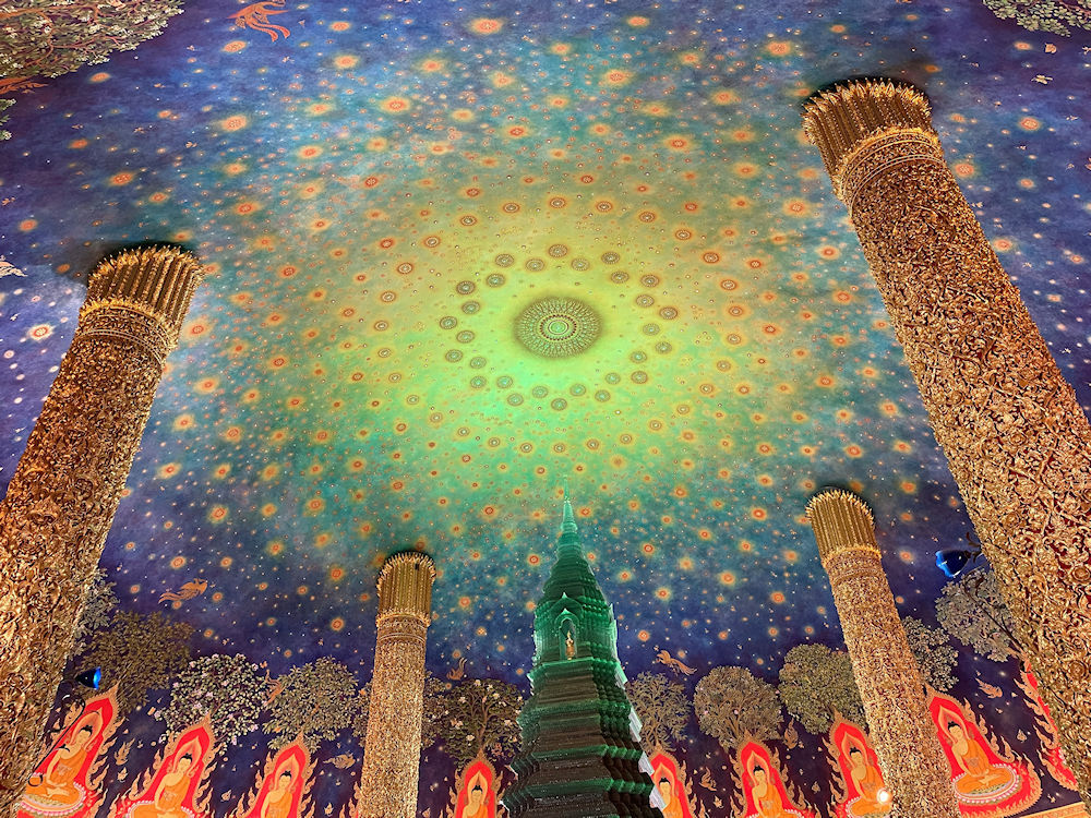次に閑静な寺院の中に足を踏み入れて最上階まで上がると、アートのような仏陀の生涯図(仏伝図)の天井画があり、それがとても有名です。