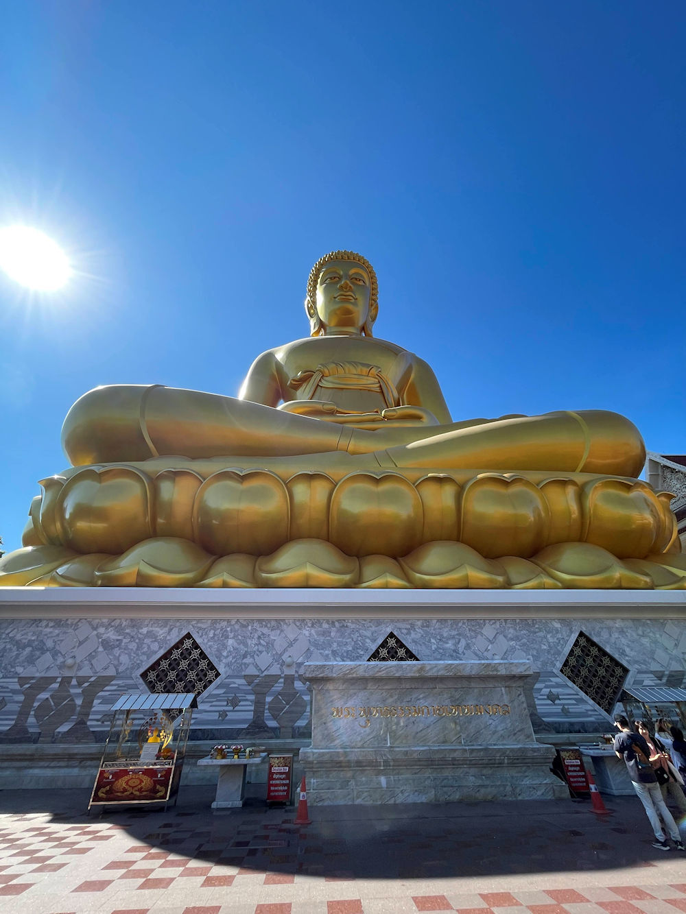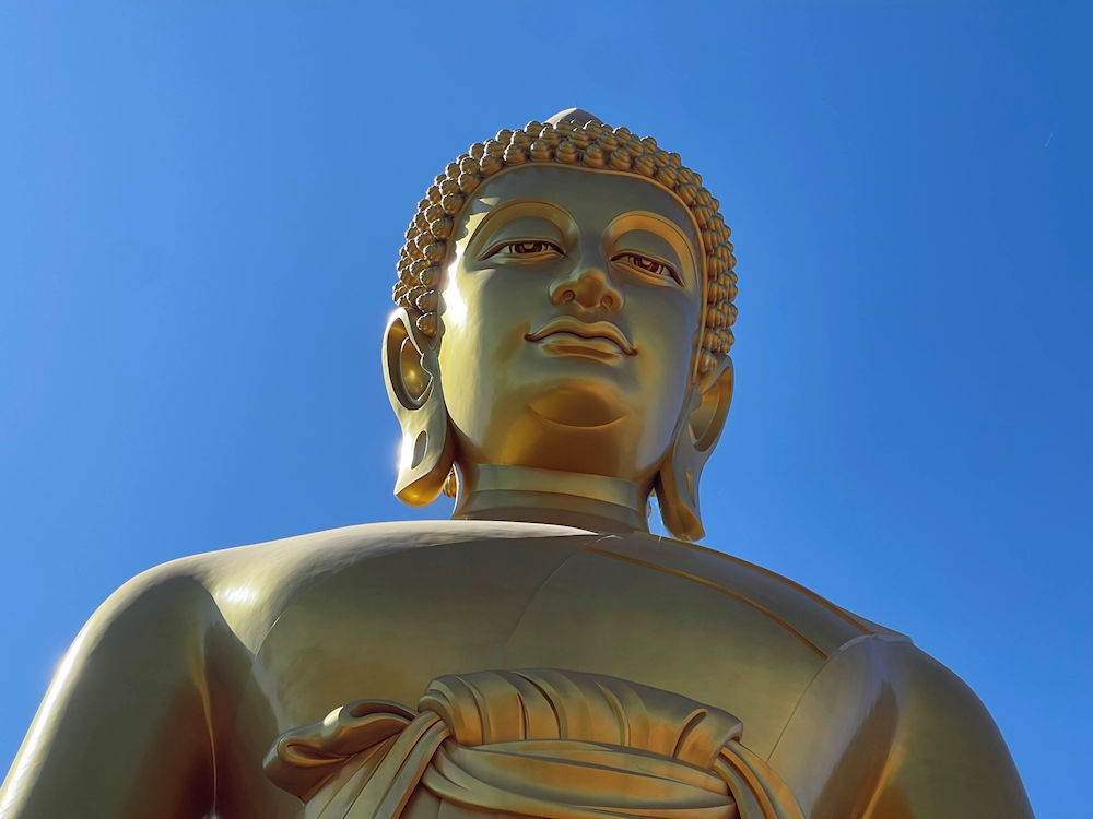 まず目をひくのは瞑想の姿勢としては世界で最も高いといわれている高さ69mのブロンズでできた黄金の仏像。