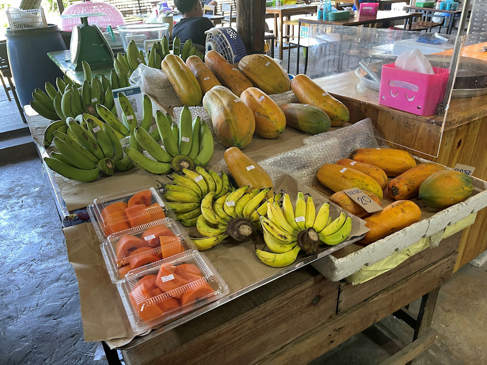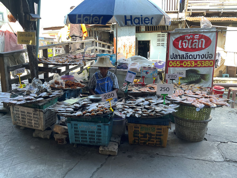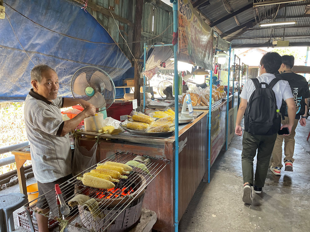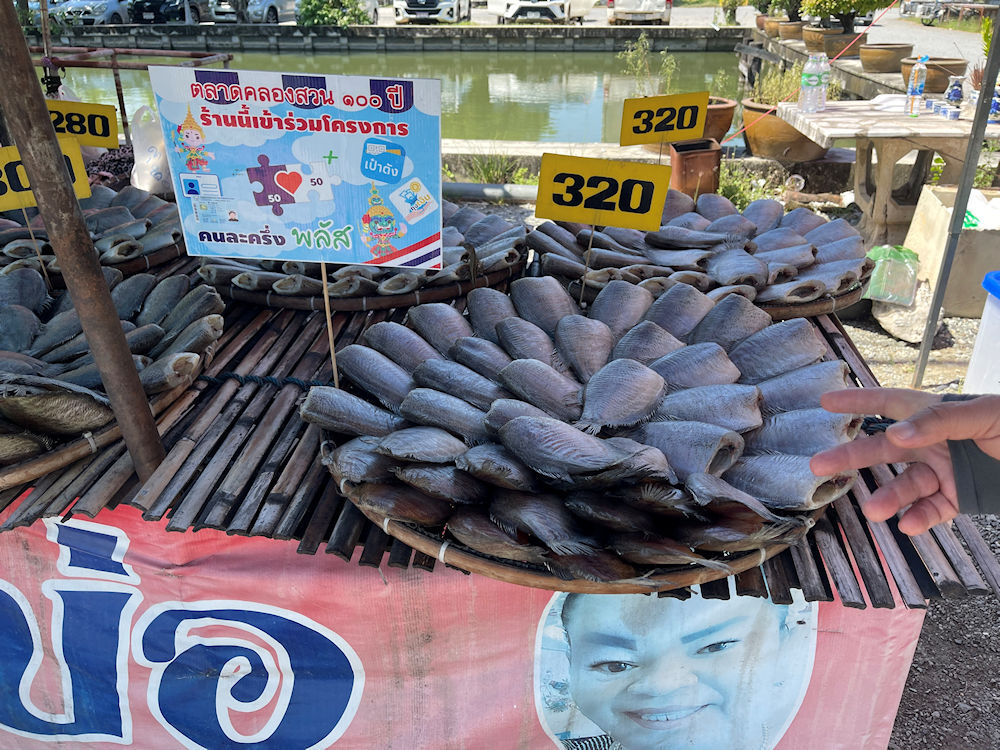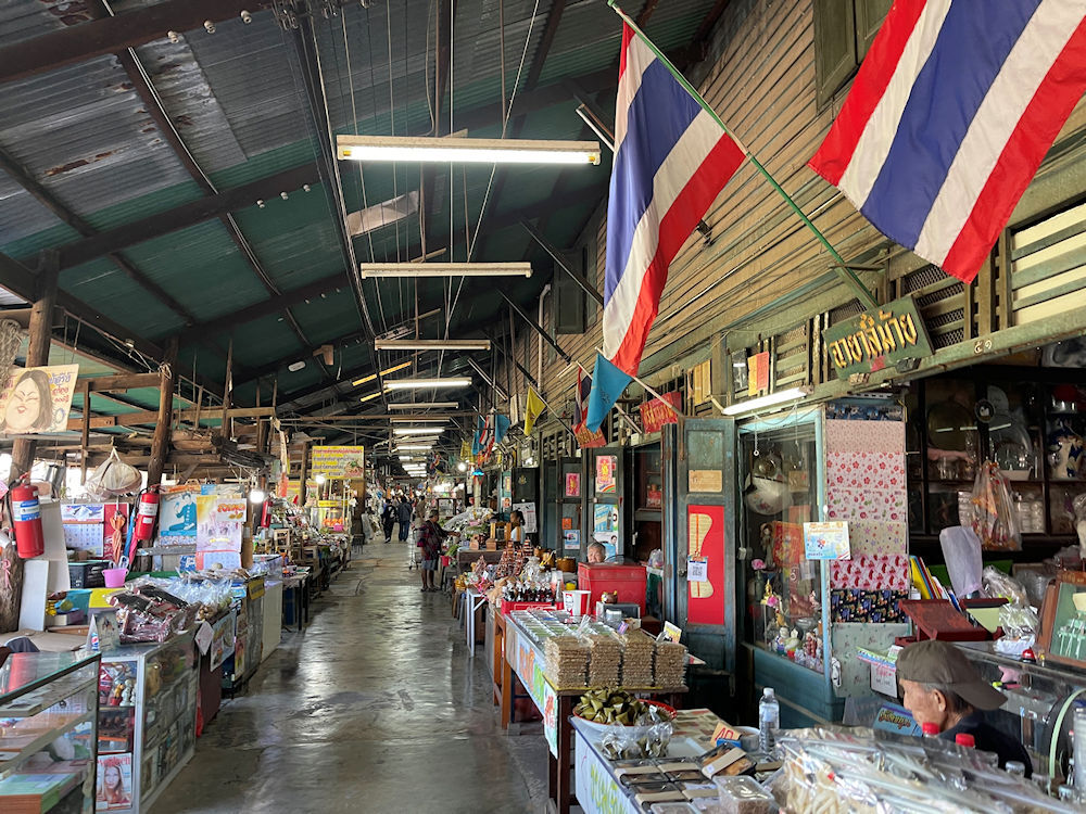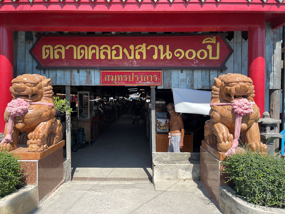 東西に長い市場で、Googleマップで確かめると、西側のクローンスアン市場(ตลาดคลองสวน 100 ปี)から入り、東側のスアン運河100年伝統市場(チャチューンサオ側)へ抜けて行くルートで廻ったようです。
