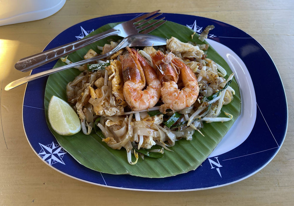 その昼食ですが、パッタイ(タイ風焼きそば)とホイジョー。