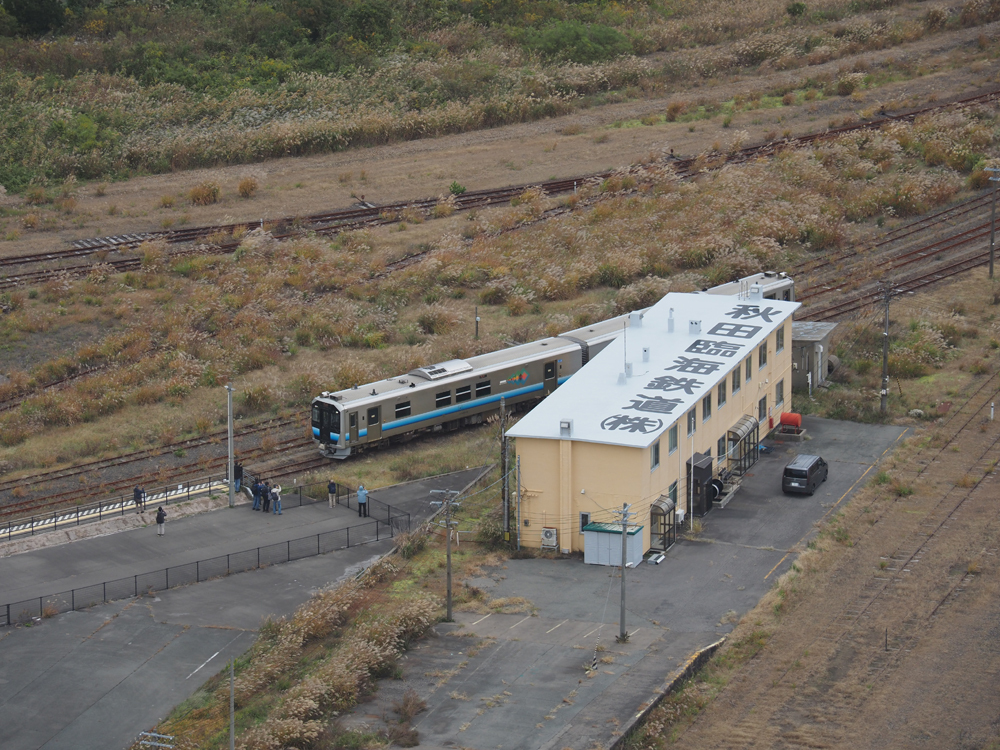 ところでこの「道の駅あきた港 ポートタワー・セリオン」、この日は風が強かったこともあり、ゆっくりながらズーッと揺れていました。高層ビルの長周期地震動の揺れ幅を狭くしたような感じで、歩いていれば気にならないのでしょうが、カメラを構えてじっとしていたので、周りの人とも「揺れているよね」と会話しつつ、不思議な一体感がありました。