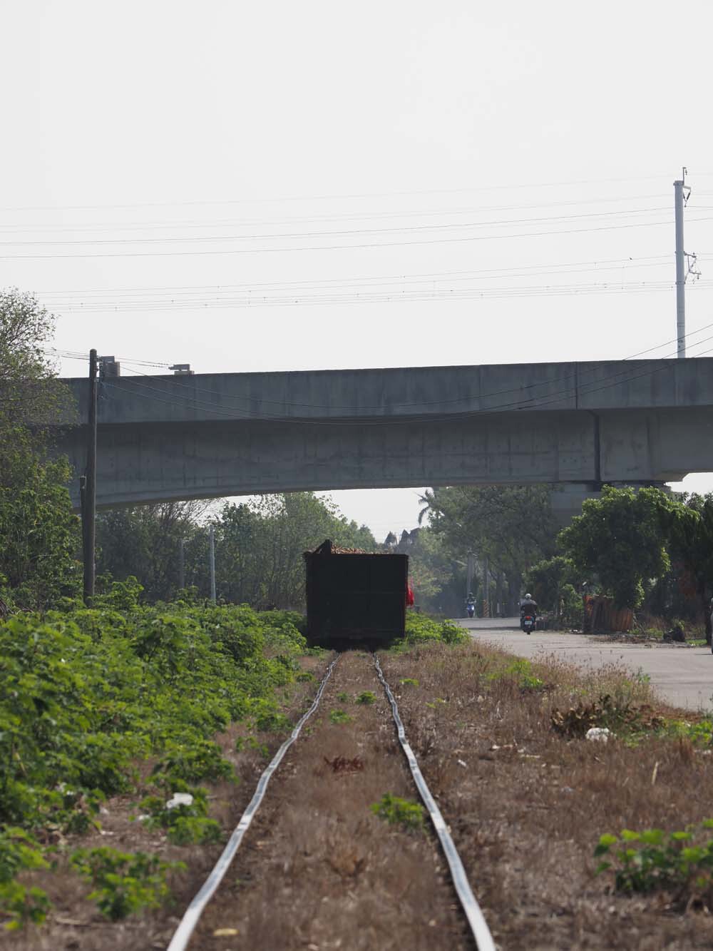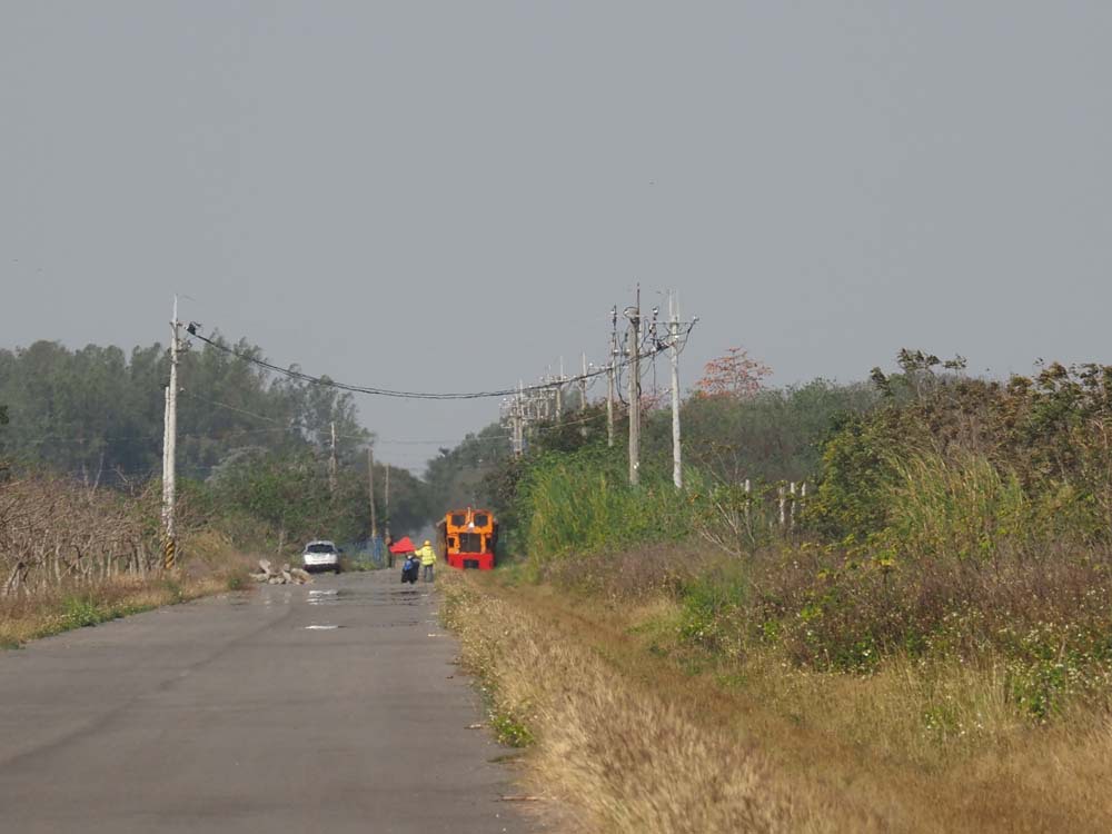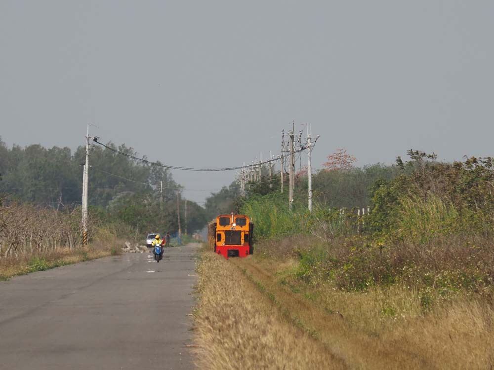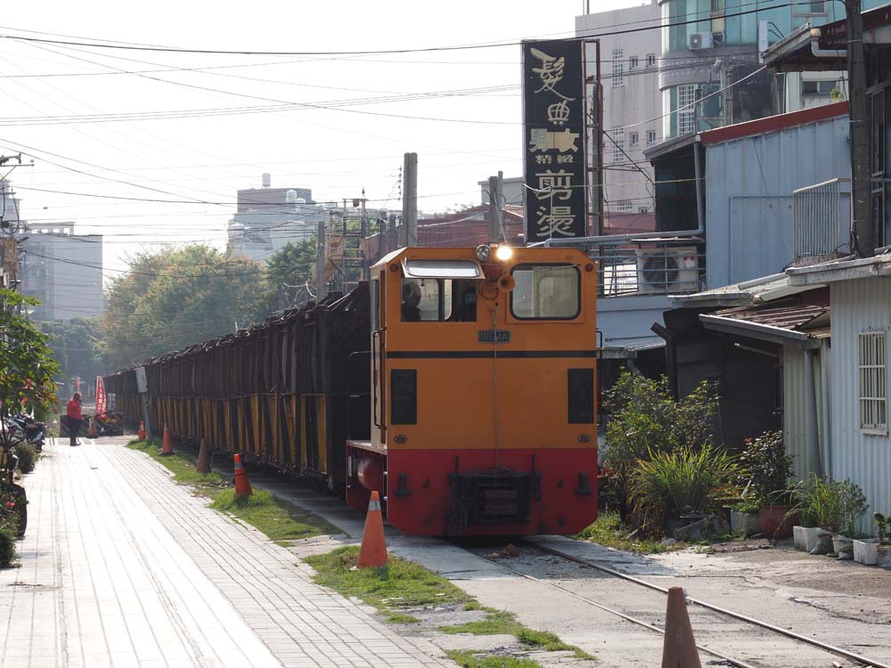 まずは虎尾の市街地で、08:21に通過の製糖工場からサトウキビの集積所(積込所)に向かう列車を撮影。