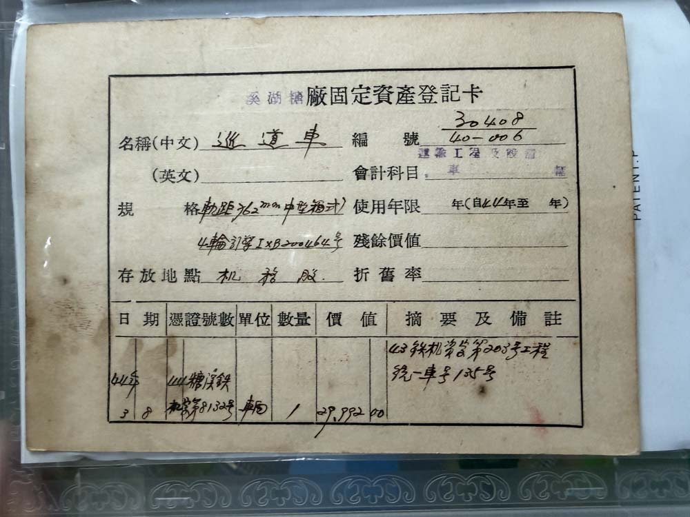 また店の外には「巡道車 135号」が展示されており、その資産登記卡(登記資産カード)もあるので、それが「私が正式な所有者であることの証」と陳さんは笑いながら説明してくれました。