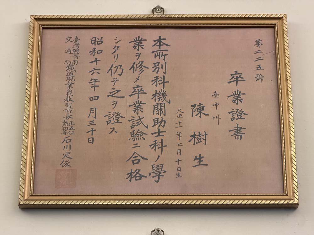 因みに陳さんのお父さんは鉄道マンだったとのことで、お父さんに関する展示もあり。