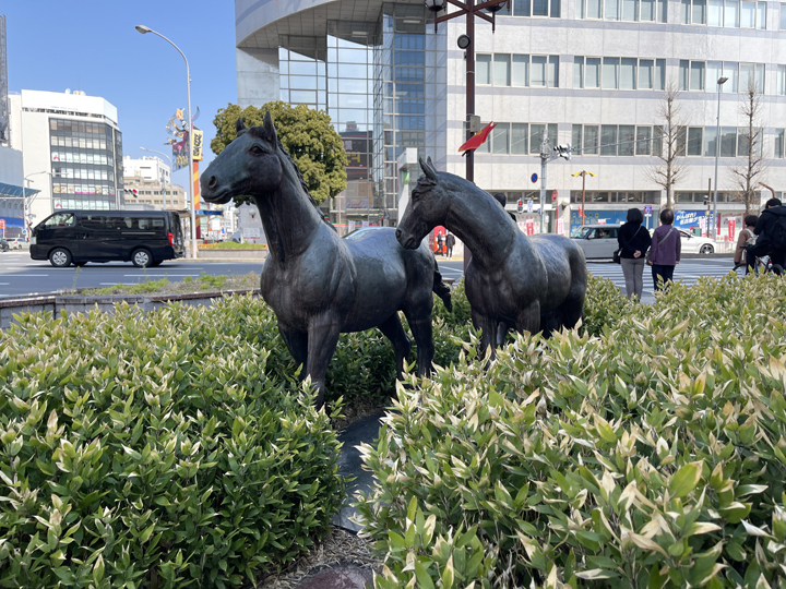 颯爽と走る馬たち。もう少し植え込みの丈が低いと疾走感が出そうですね。