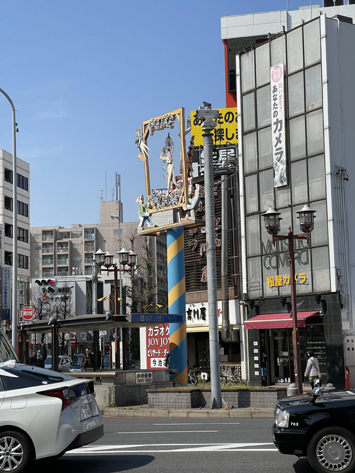 地下鉄東山線と桜通線が交差する今池駅。東山線は錦通の地下を走っているので、その直上とは言えませんが、1本南の筋にある今池交差点。千種郵便局の前にカラフルなオブジェ(?)があります。